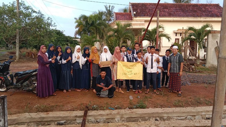 WARTAMU.ID, Way Kanan (Lampung) – Siswa dan siswi serta dewan guru SMP Ebta Kartika Sukabumi Kec Pakuan Ratu Way Kanan mengadakan kegiatan berbagi takjil gratis pada para pengendara yang melintas di Jalan Kampung Sukabumi. Seluruh siswa dan dewan guru terlibat dalam kegiatan tersebut. Sabtu (23/4/2022)