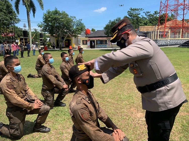 Bintara Polri Lulusan Tahun 2021 Lakukan Tradisi Pembaretan di Polres Way Kanan
