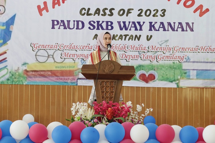 “Dan kepada Kepala Dinas Pendidikan dan Kebudayaan, Saya juga berpesan agar terus memantau dan meningkatkan pembinaannya terhadap perkembangan PAUD di Kabupaten Way Kanan, sehingga metode pembelajarannya menjadi lebih baik. Atas nama pribadi dan Bunda PAUD Way Kanan, Saya mengucapkan terima kasih serta apresiasi kepada Bapak, Ibu Pengajar, kepada seluruh pengurus dan pengelola PAUD SKB dan pengelola PAUD se-Kabupaten Way Kanan, yang secara bersama-sama membangun dunia pendidikan, untuk mewujudkan masyarakat yang cerdas dan mandiri, meuju Way Kanan Unggul dan Sejahtera”, tutup Bunda Dessy Adipati pada acara yang dihadiri oleh Kepala Dinas Pendidikan dan Kebudayaan, Ketua Dharma Wanita Persatuan, Kepala UPT SKB Way Kanan beserta jajaran Dewan Guru, dan para Wali Murid.