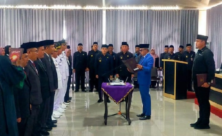 Pelantikan tersebut dilakukan terhadap Pejabat Eselon II yang di lantik hasil dari seleksi terbuka yang dilakukan pada Desember 2023 lalu, serta ada empat Camat dan puluhan Pejabat Eselon III lainnya seperti Sekretaris, Kepala Bidang, Kepala Bagian dan Sekretaris Camat.