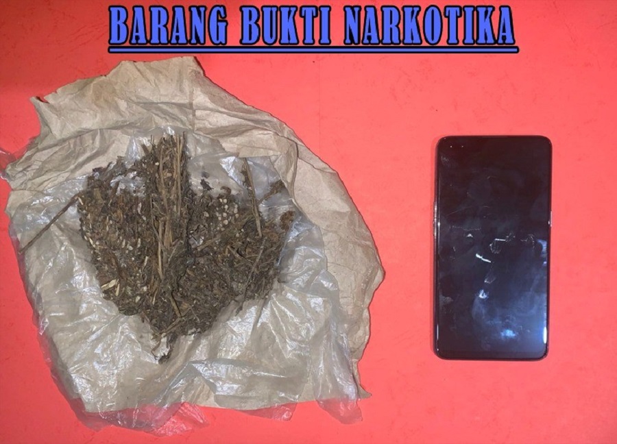 Hasilnya ditemukan di genggaman tangan kanan terlapor HT, barang/benda yang berkaitan dengan tindak pidana Narkotika, berupa 1 (satu) bungkusan kertas warna coklat yang setelah dibuka isinya merupakan daun kering yang diduga Narkotika dalam bentuk tanaman jenis ganja dengan berat netto 37,6 gram.