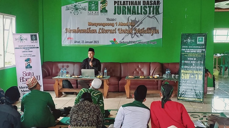 Hal tersebut disampaikan dosen UIN Raden Intan Lampung, Dr. Abdul Qodir Zaelani, MA didepan para peserta dalam acara Pelatihan Dasar Jurnalistik yang diinisiasi oleh Pengurus Cabang (PC) Lembaga Ta’lif wan Nasyr Nahdlatul Ulama (LTN NU) Kabupaten Lampung Tengah, di lantai II gedung PCNU Lampung Tengah yang beralamatkan Jalan Proklamator Raya No 134 Seputih Jaya, Gunung Sugih, Kabupaten Lampung Tengah, Ahad (22/1/2023) siang, bertepatan 29 Jumadil Akhir 1444 H.
