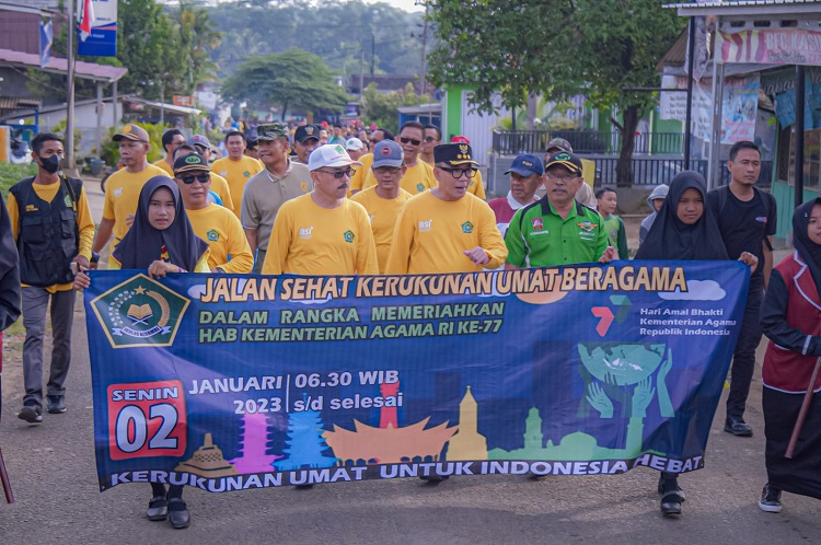WARTAMU.ID, Way Kanan – Bupati H. Raden Adipati Surya, S.H.,M.M didampingi Ketua Tim Penggerak PKK Kabupaten, Ny. Hj.Dessy Afriyanti Adipati menghadiri Kegiatan Jalan Sehat Antar Umat Beragama dalam Rangka Hari Amal Bhakti Kemeterian Agama RI Ke-77 Tahun 2023 di MTS Negeri 01 Way Kanan Kecamatan Kasui, Senin (02/01/2023).