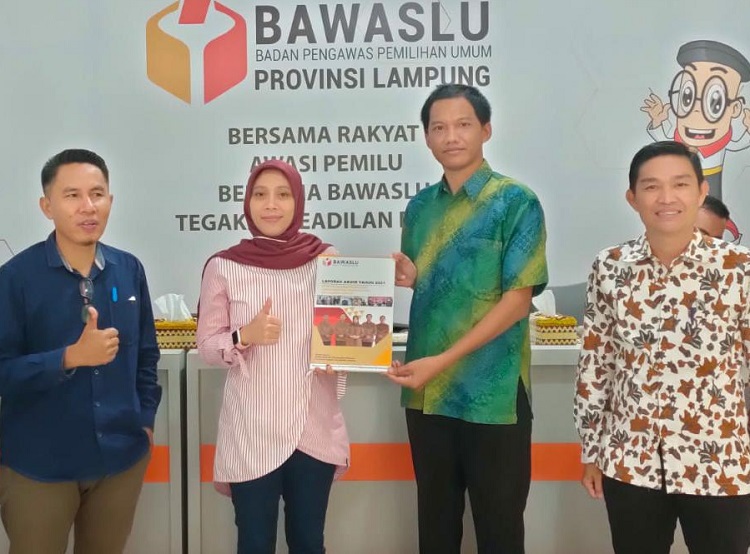 Selain itu, pada kesempatan tersebut, Yahnu Wiguno Sanyoto juga menyerahkan Laporan Tahunan Divisi Penanganan Pelanggaran Tahun 2021 kepada Bawaslu Republik Indonesia melalui Bawaslu Provinsi Lampung yang diterima oleh Ketua Bawaslu Provinsi Lampung Fatikhatul Khoiriyah, Selasa (8/3).