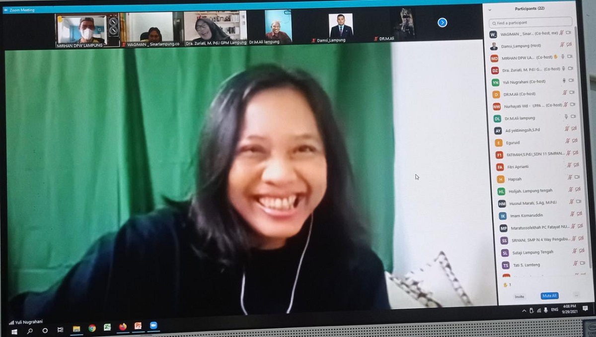 WARTAMU.ID, Bandar Lampung – Roadshow kegiatan webinar yang dilaksanakan melalui Zoom Meeting atau virtual kolaborasi PGRI dan AGPAII Provinsi Lampung dalam rangka penguatan kompetensi guru literasi moderasi beragama dalam penyelenggaraan satu sekolah satu buku karya guru agama, Kamis, 29/09/2021.