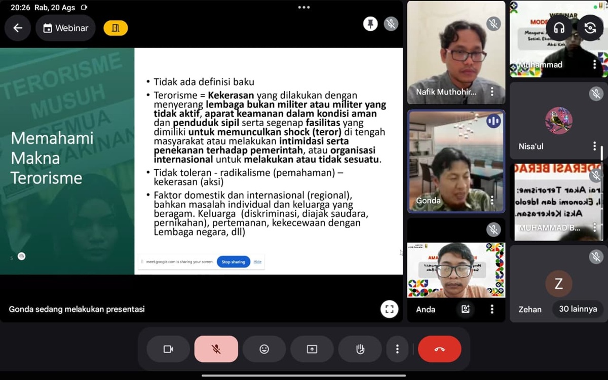 WARTAMU.ID, Malang – Sebagai bentuk ikhtiar dalam menguatkan moderasi beragama dan mengarusutamakan nuansa Islam rahmatan lil alamin, Pimpinan Cabang Ikatan Mahasiswa Muhammadiyah (PC IMM) Malang Raya menyelenggarakan Webinar Moderasi Beragama dengan tema “Mengurai Akar Terorisme: Perspektif Sosial, Ekonomi dan Ideologi di Balik Aksi Kekerasan” pada Rabu malam (20/8/2025).