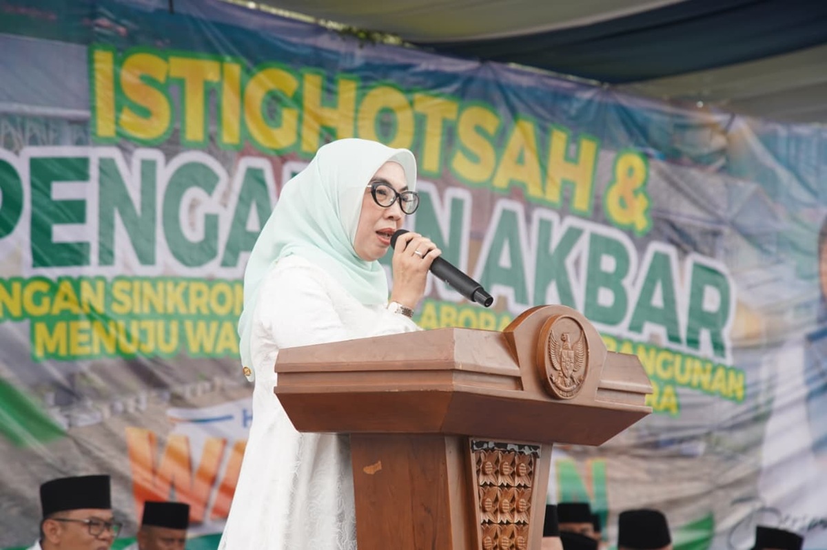 Dalam sambutannya, Bupati Way Kanan Ayu Asalasiyah menyampaikan harapannya agar seluruh doa yang dipanjatkan dalam kegiatan istighosah ini dapat diijabah oleh Allah SWT