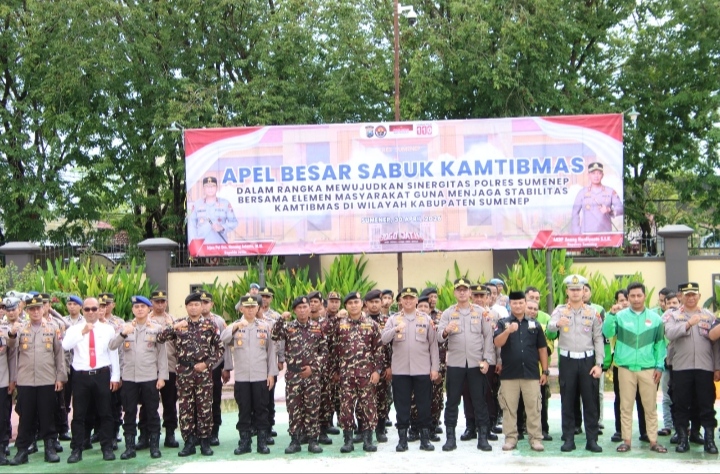 WARTAMU.ID, Sumenep – Kapolres Sumenep, AKBP Anang Hardiyanto, memimpin langsung Apel Besar Sabuk Kamtibmas yang digelar di Lapangan Apel Tribrata Polres Sumenep Jawa Timur.