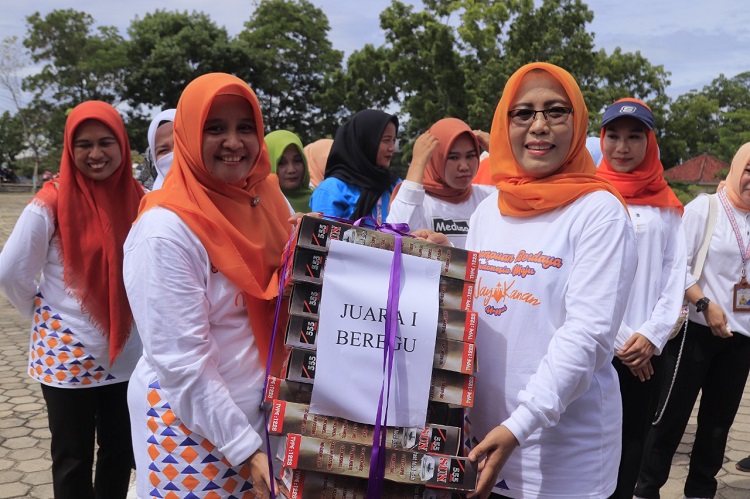 Diketahui, pada acara tersebut dilakukan pemotongan tumpeng Ulang Tahun Ketua Tim Penggerak PKK Kabupaten Ke-42 Tahun dan menyerahan hadiah bagi para pemenang perlombaan tradisional yang digelar khusus untuk para Ibu-ibu.