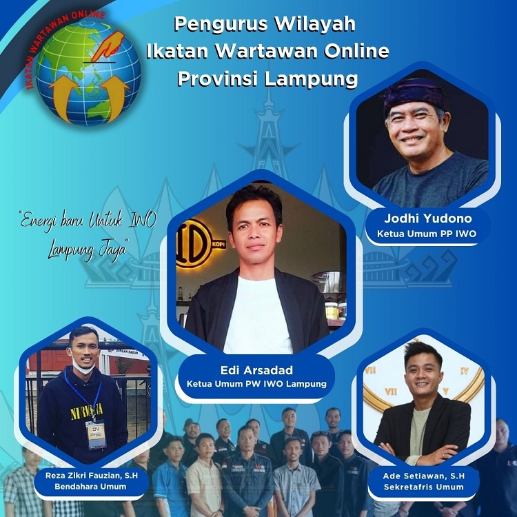 WARTAMU.ID, Bandar Lampung – Setelah ramainya pemberhentian Ketua Pengurus Wilayah (PW) Ikatan Wartawan Online (IWO) Lampung Riko Amir oleh PP IWO, dan selesai dilakukannya Musyawarah Bersama Wilayah Luar Biasa (mubeswillub) Lampung, Terpilihlah Ketua PW IWO baru yang digadang dapat memberikan perubahan terhadap stigma negatif dan kemajuan yang berkelanjutan dunia jurnalistik khususnya keluarga besar IWO di Lampung.