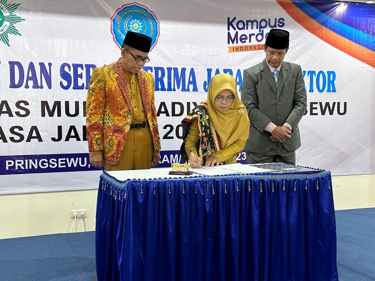 WARTAMU.ID, Pringsewu – Tepat diusianya yang keempat tahun, Universitas Muhammadiyah Pringsewu Lampung hari ini Selasa (29/7) resmi memiliki nahkoda baru untuk periode empat tahun kedepan. Bertempat di Aula Rektorat, Ns. Arena Lestari, M.Kep., Sp.Kep.J., Ph.D resmi dilantik oleh Majelis Diktilitbang PP Muhammadiyah Pringsewu sebagai Rektor UMPRI untuk masa jabatan 2023-2027, Selasa (29/7).