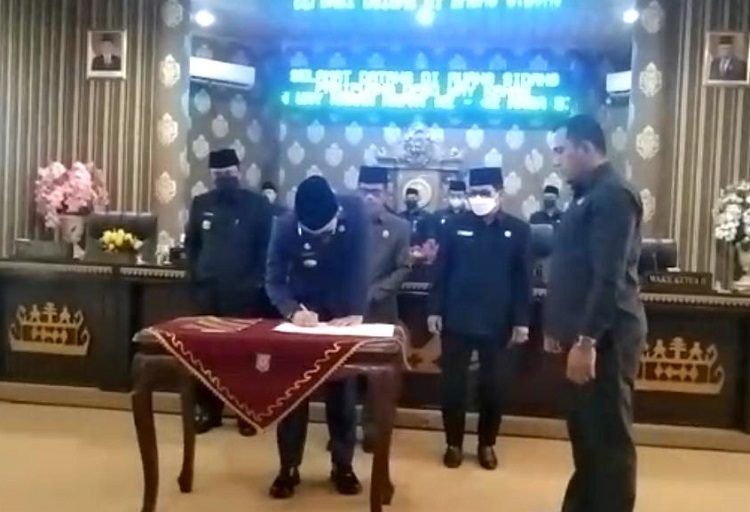 Akhirnya Sekretaris Dewan Perwakilan Rakyat Daerah Menyetuji Pengesahan Raperda Pertanggujawaban APBD Tahun 2021. Bupati Wajib menanggapi Pandangan Umun Anggota Dewan untuk perubahan yang labih Baik .Dan mengesahkan Reperda tentang penyalah gunaan Narkotika serta penyerahan Raperda Tentang Pariwisata dan Raperda tentang Pengelolaan Keuangan Daerah.