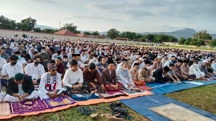 Pelaksanaan salat Id dilakukan dengan menerapkan protokol kesehatan. Selain wajib memakai masker, jemaah harus membawa sajadah masing-masing.
