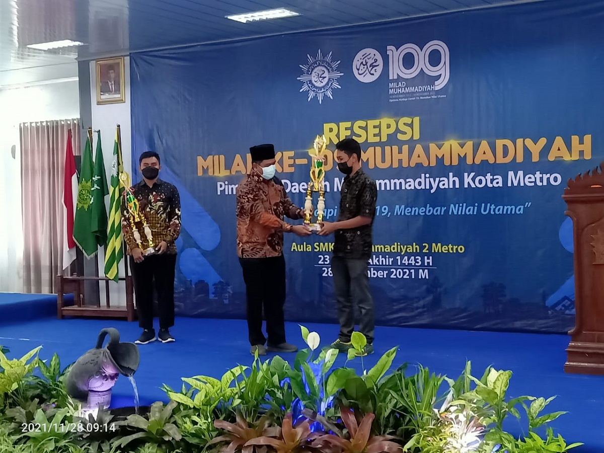 Untuk juara 2 yang diraih oleh PCM Metro Timur, tropi dan hadiah, yang diserahkan dalam satu rangkaian Milad Muhammadiyah ke 109 tahun di Aula SMK Muhammadiyah 2 Metro.