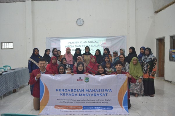 WARTAMU.ID, Malang – Dalam menghadapi perkembangan teknologi dan penggunaan sosial media yang semakin merajalela, Pengabdian Masyarakat oleh Mahasiswa (PMM) kelompok 1 gelombang 5 Universitas Muhammadiyah Malang (UMM) perlu untuk memberikan pemahaman yang lebih mendalam tentang sosial media dan prinsip etika yang harus diterapkan di dalamnya. Dengan fokus pada Desa Sumbersekar Dusun Precet, langkah ini diambil untuk memberdayakan masyarakat dengan pengetahuan yang cukup untuk berinteraksi secara positif di dunia maya.