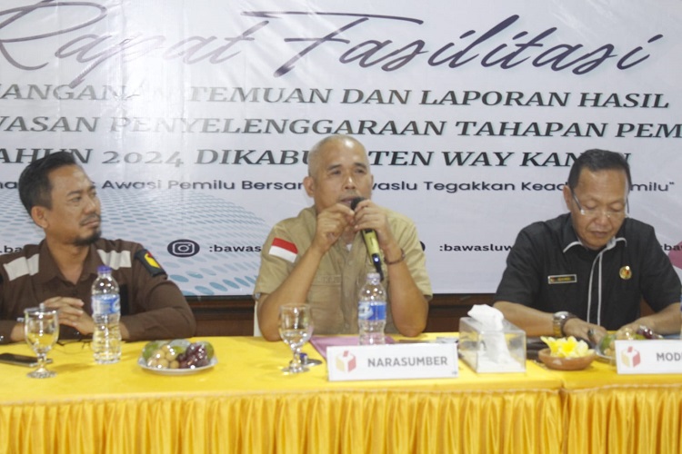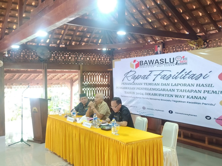 WARTAMU.ID, Way Kanan – Bertempat di aula Mutiara Hotel Almer Baradatu Way Kanan tengah berlangsung kegiatan rapat fasilitasi penanganan temuan dan laporan hasil penyelenggaraan tahapan Pemilu 2024 oleh Bawaslu Kabupaten Way Kanan. Senin, 12/12/2022.
