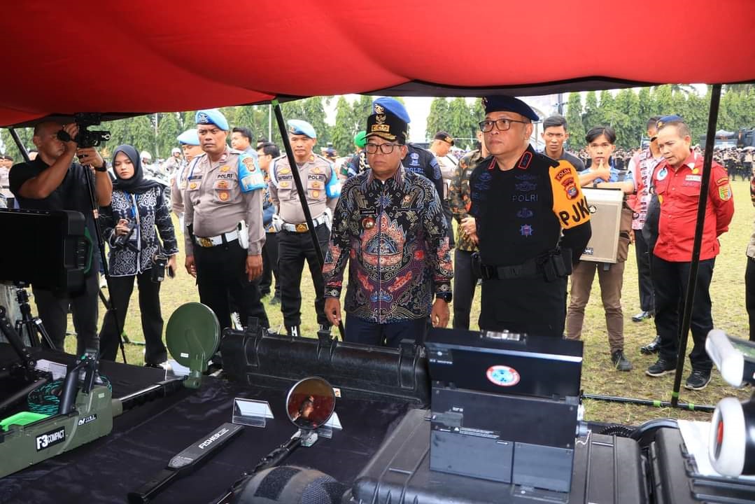 Beragam peralatan komunikasi, persenjataan, dan kendaraan ditampilkan dalam apel gelar pasukan ini. Pj. Gubernur, didampingi Kapolda, Danrem, Ketua KPU, dan Ketua Bawaslu Provinsi Lampung, secara langsung mengendarai kendaraan motor roda dua milik Polda Lampung yang biasa digunakan dalam pengawalan dan patroli lalu lintas.