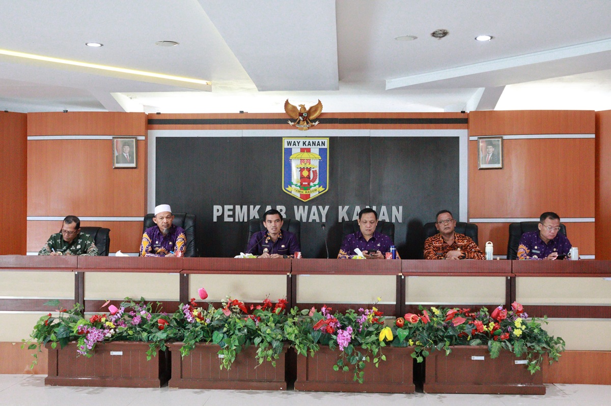 Penjabat (Pj.) Sekretaris Daerah (Sekda) Kabupaten Way Kanan, Dr. Arie Anthony Thamrin, S.STP., M.IP., CGCAE., CGRE., memimpin Rapat Koordinasi (Rakor)