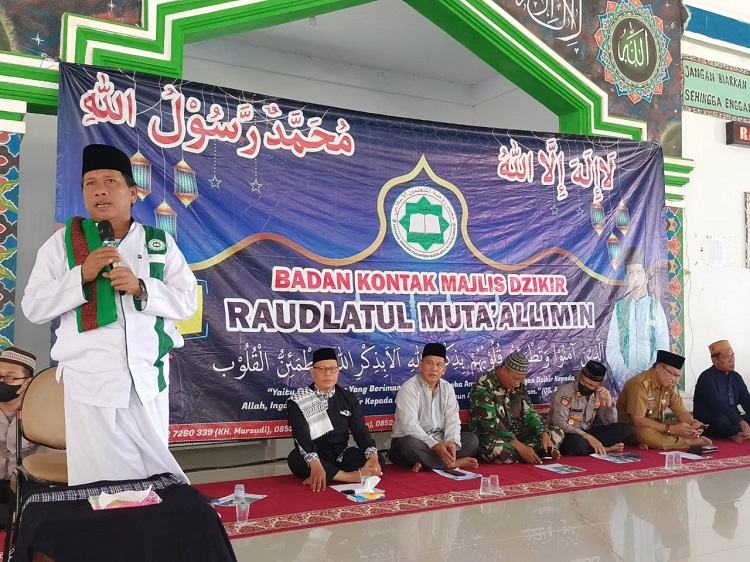 KH. Marsudi selaku pembina dalam sambutannya, “ Mari kita agar selalu memperbaiki iman dan Islam kita dengan memperbanyak membaca kalimat tahlil. Beliau menjelaskan bahwa kalimat La Ilaha Illallah Muhammad Rasulullah lah kita hidup dan dengan kalimat tersebutlah kita nanti mati.” Kemudian KH. Marsudi diakhir sambutannya memberikan apresiasi kepada Ibu-Ibu Jama’ah dari berbagai Majlis Taklim yang telah berhasil menghafalkan asmaul husna dan hadits-hadits.