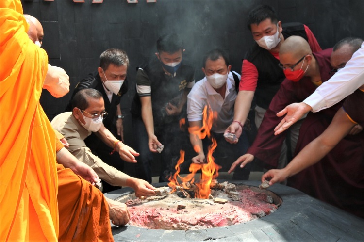 Ritual pun digelar. Mulai dari penyalaan lilin panca warna bersama Direktur Urusan dan Pendidikan Agama Buddha Ditjen Bimas Buddha Kementerian Agama, Supriadi, hingga gelaran ritual dari perwakilan majelis umat Buddha Indonesia jelang pengambilan api Dharma.