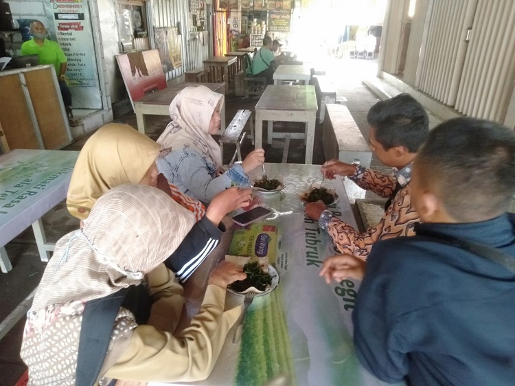 WARTAMU.ID, Cirebon – Makanan Khas Cirebon, Rujak Kangkung menjadi menu sajian utama di Warung makan Mas Joe, depan kampus IAIN Cirebon, Senin (12/12/2022).