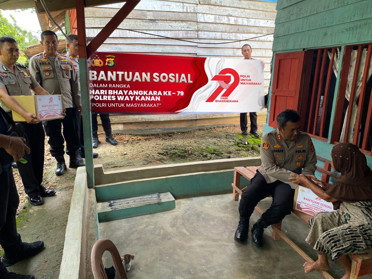 WARTAMU.ID, Way Kanan – Dalam rangka menyambut Hari Bhayangkara ke-79 yang jatuh pada 1 Juli 2025, Polres Way Kanan Polda Lampung melaksanakan kegiatan Bantuan Sosial (Bansos) kepada masyarakat kurang mampu di sekitar Kampung Negeri Baru, Kecamatan Umpu Semenguk, Kabupaten Way Kanan, pada Jumat (13/06/2025).