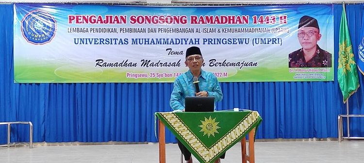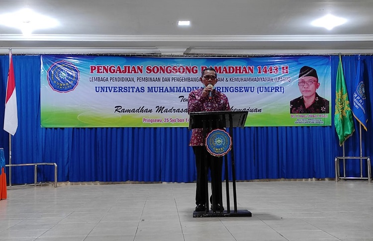 WARTAMU.ID, Pringsewu (Lampung) – Universitas Muhammadiyah Pringsewu (UMPRI) melalui Lembaga Pendidikan, Pembinaan dan Pengembangan Al Islam Kemuhammadiyahan (LP3AIK) adakan kegiatan pengajian Songsong Ramdhan 1443 H di Aula Fakultas Keguruan dan Ilmu Pendidikan (FKIP). Di adakan pada tanggal 25 Sya’ban 1443 H atau 28 Maret 2022. Kegiatan ini di ikuti oleh seluruh Pimpinan, Dosen, Staf dan karyawan. Hadir juga dalam acara ini ketua dan anggota BPH dan Pimpinan Daerah Muhammadiyah Pringsewu.
