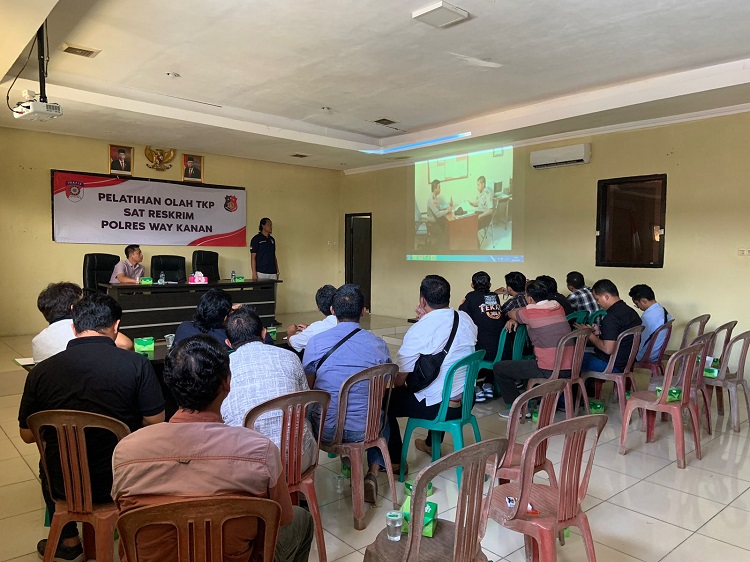 Pelatihan penanganan olah TKP dipimpin langsung oleh Kasat Reskrim Polres Way Kanan AKP Mangara yang diikuti personel Satreskrim Polsek Way Kanan bersama unit reskrim Polsek jajaran yang berlangsung di aula Adhi Pradana Polres Way Kanan.